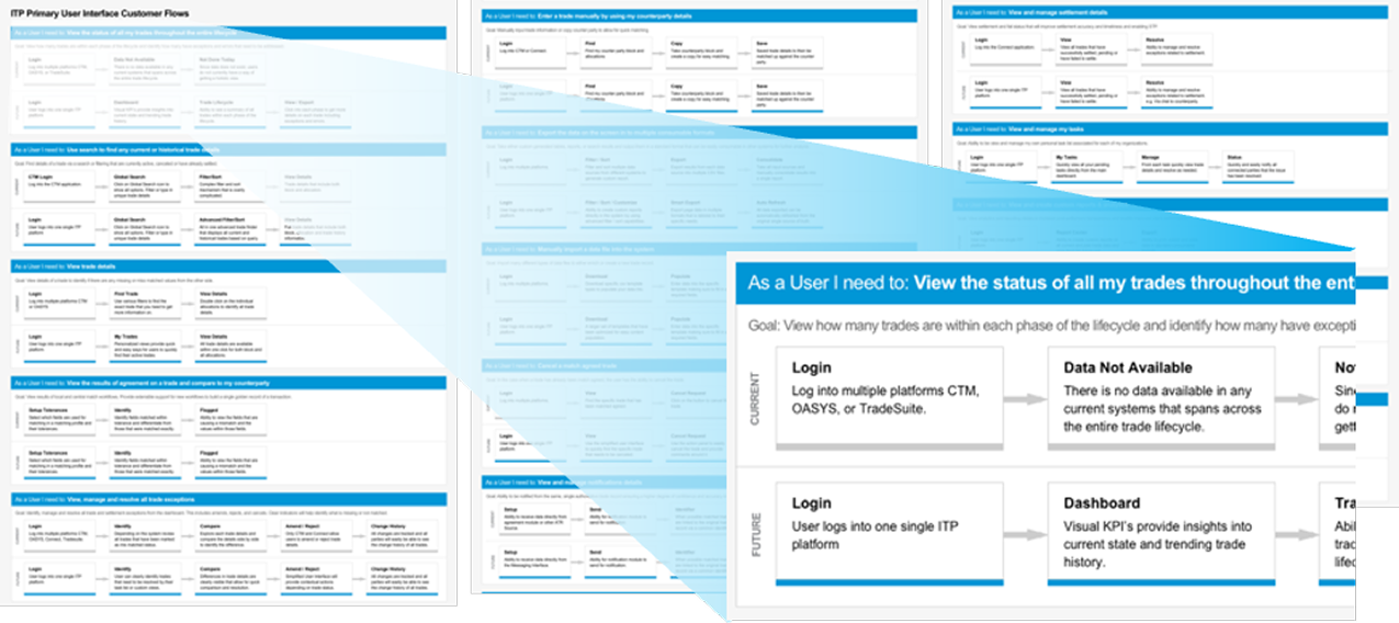 In the current system we identified many use cases in which there were duplicative and uneccesary actions that the end users were doing to perform a simple task. To resolve and simplify those uses cases I created a variety of user flow diagrams that documented the current state flows and below them a future state flow that would reduce time spent on tasks and provide a more intuitive user experience.